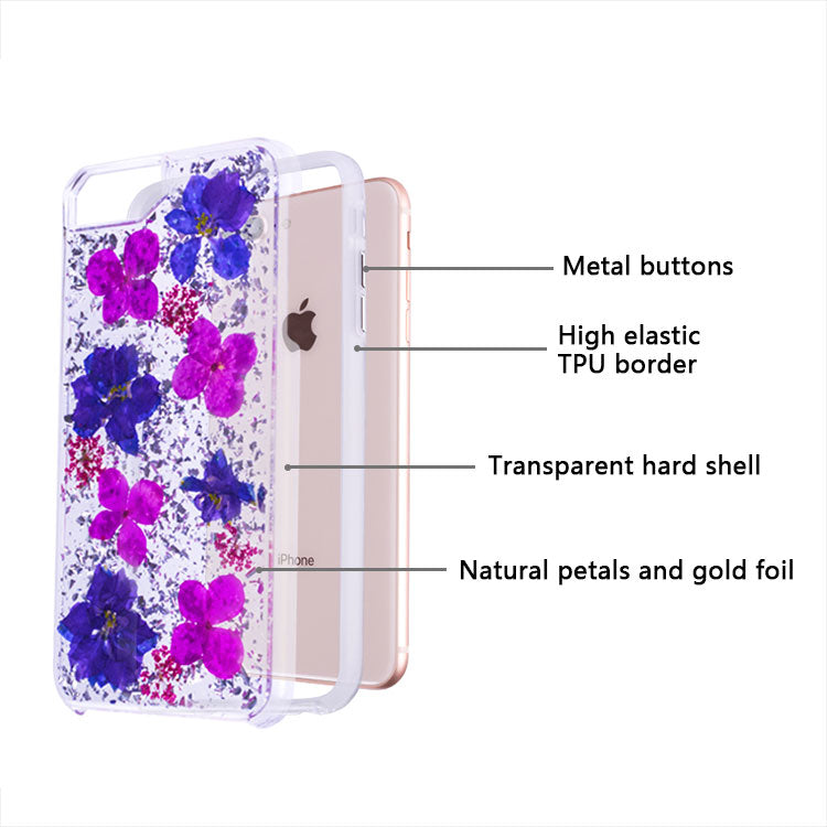 Material: TPU, PC, GENUINE FLOWERS, METALLIC FOIL
