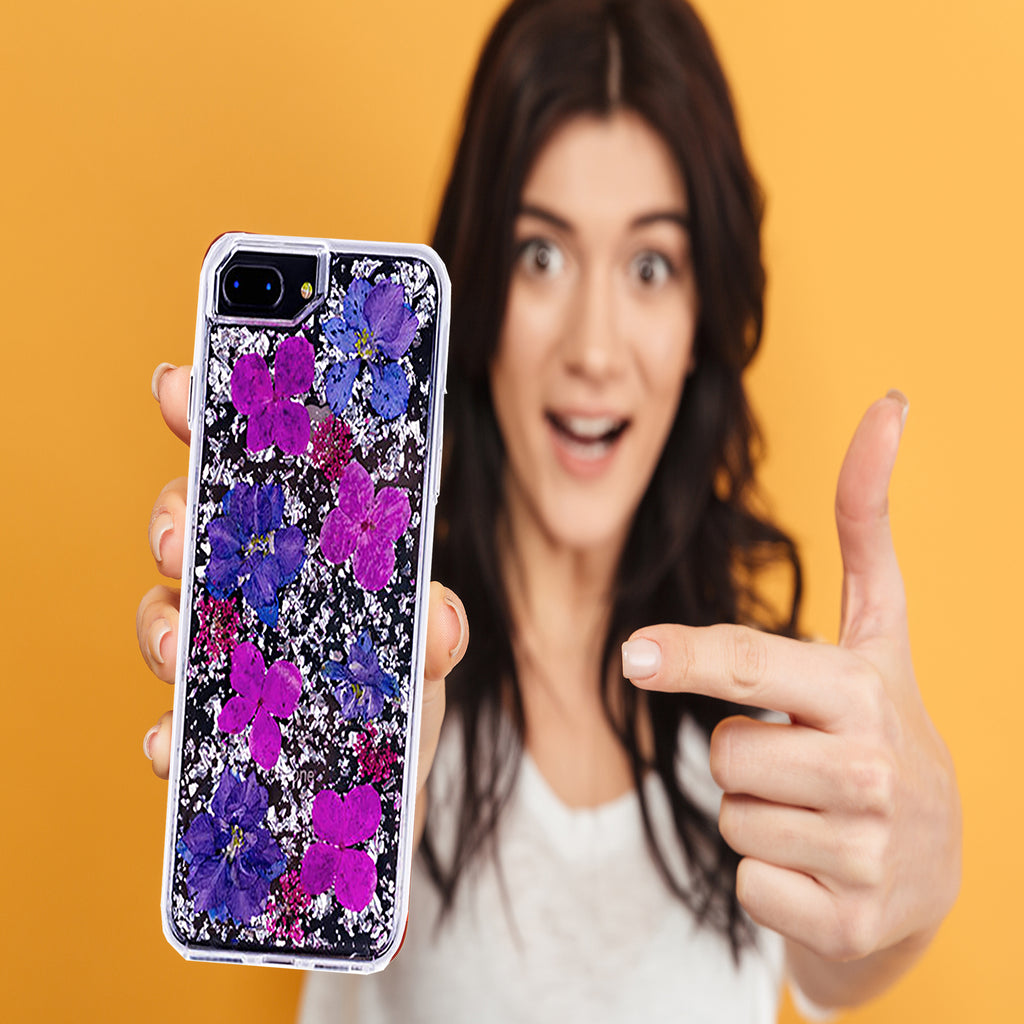 Silver Purple Flowers, Floral Case | Made with Genuine Flowers