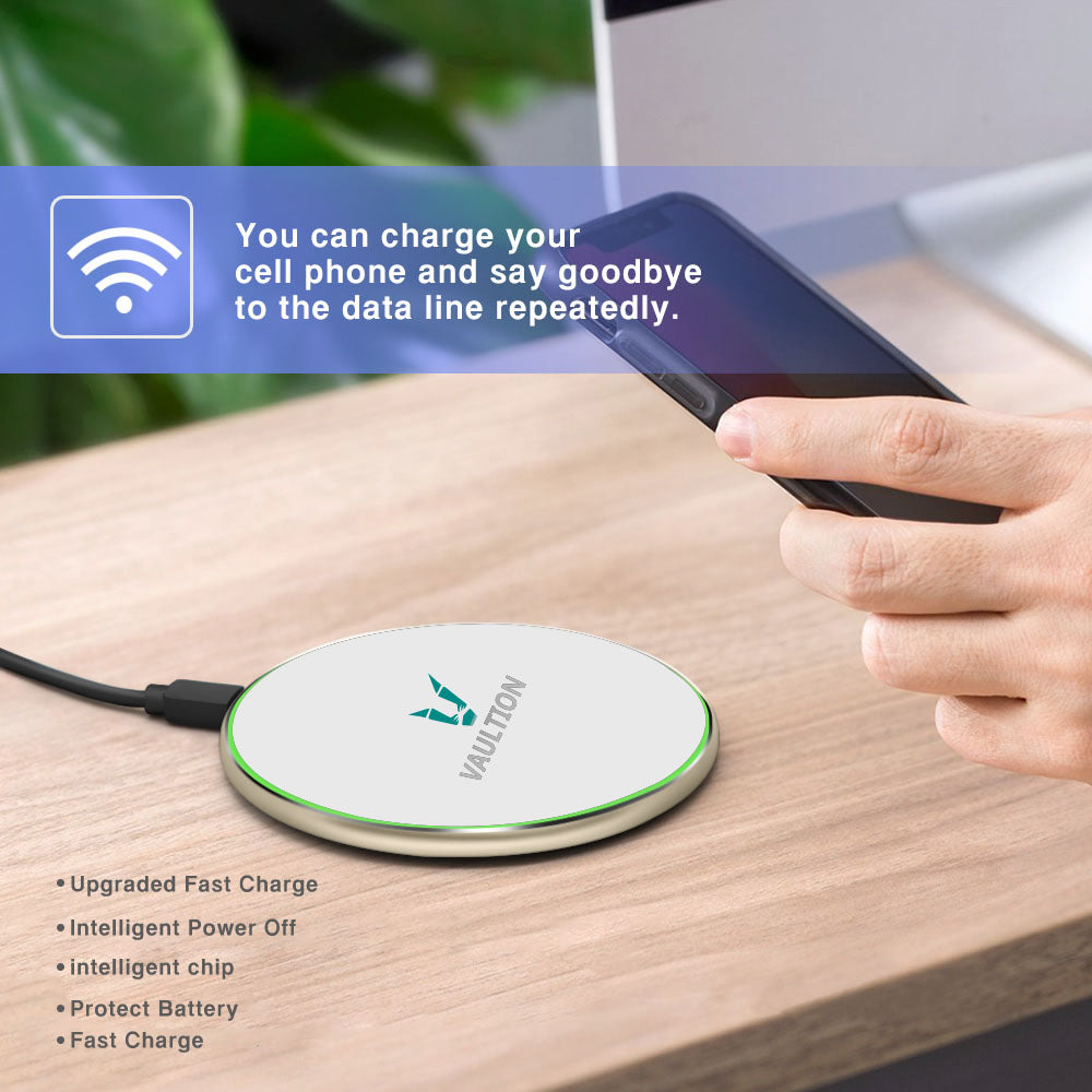 - CASE COMPATIBLE - No need to remove the phone case before wireless charging, Wefunix wireless charger is engineered to transmit electric power directly through even heavy-protection cases. NOTE: Please remove all metal cases and metal or magnetic objects from the back of your phone prior to wireless charging.